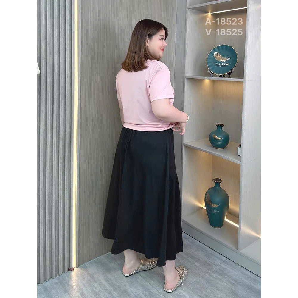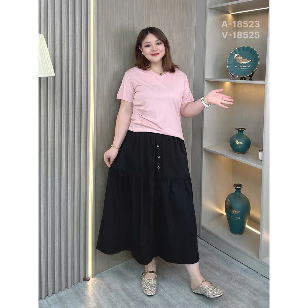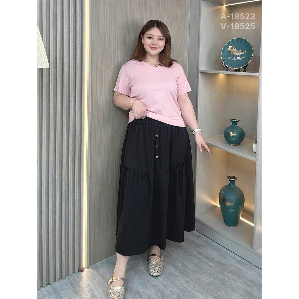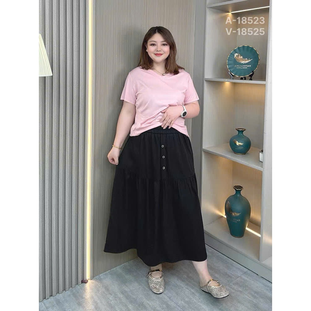 ✔ Váy dài qua gối BIGSIZE Quảng Châu lưng thun, LT 3 nút - 18525