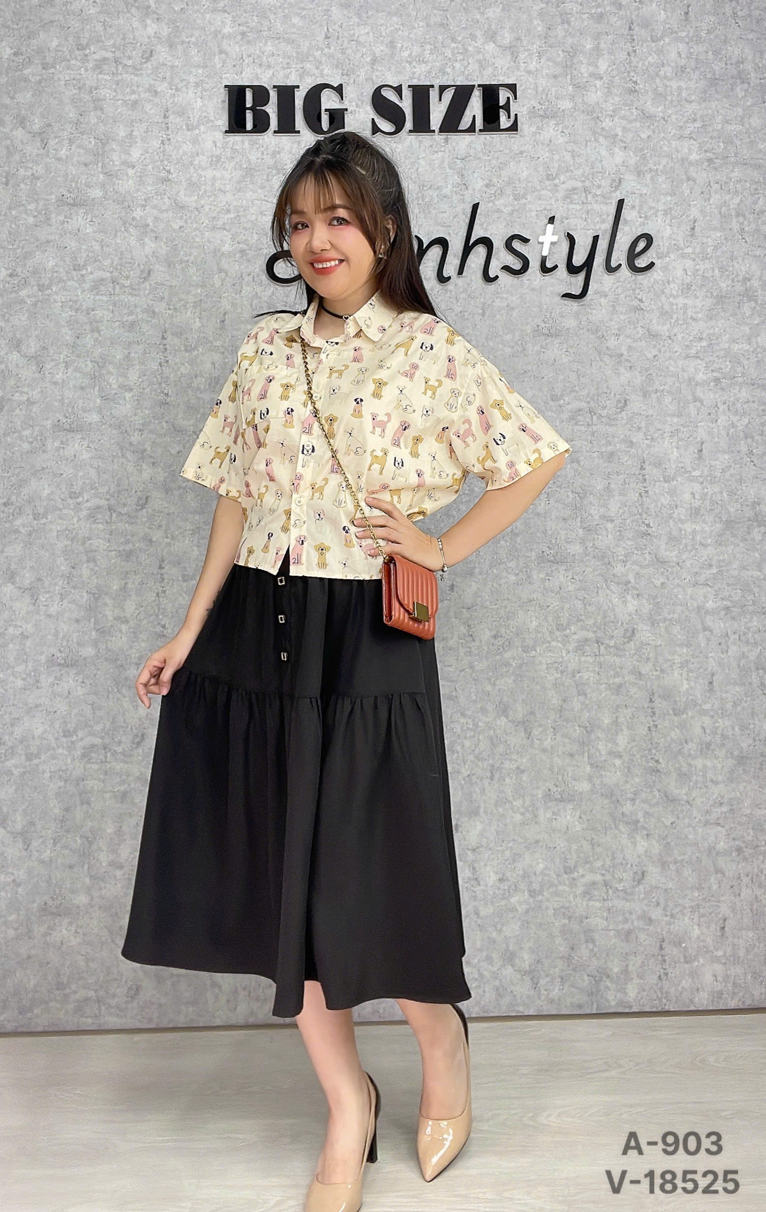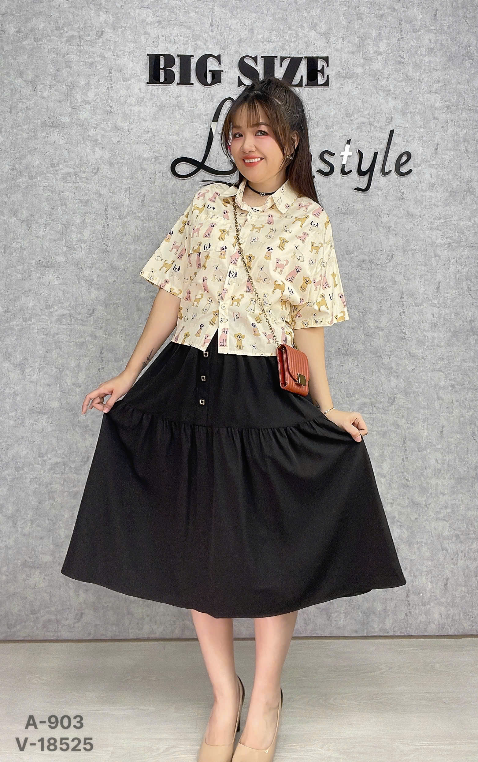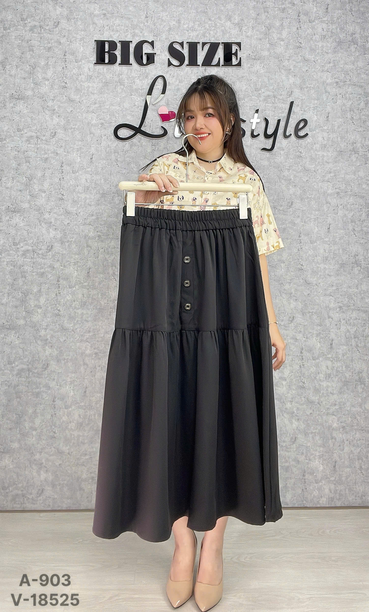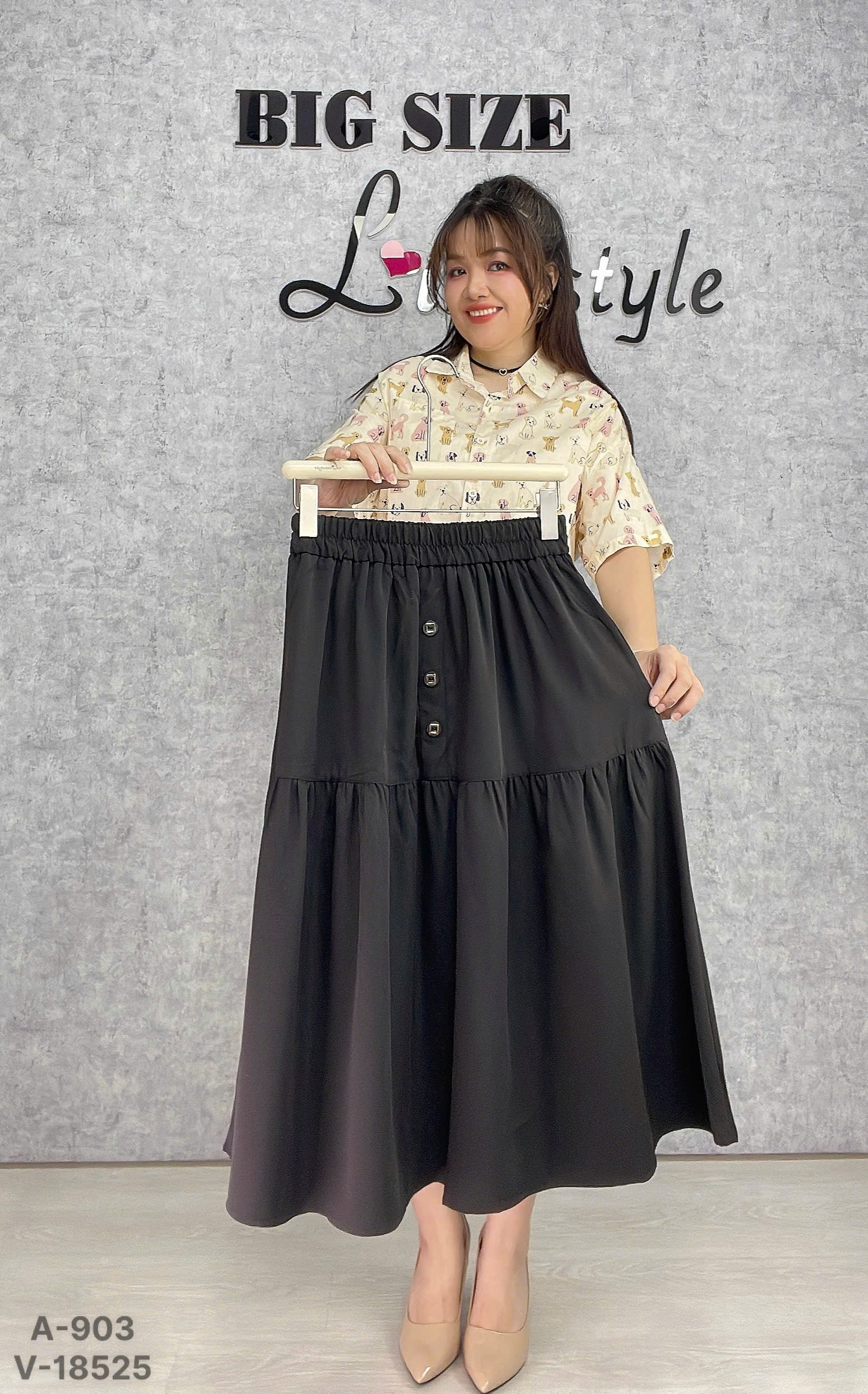 ✔ Váy dài qua gối BIGSIZE Quảng Châu lưng thun, LT 3 nút - 18525