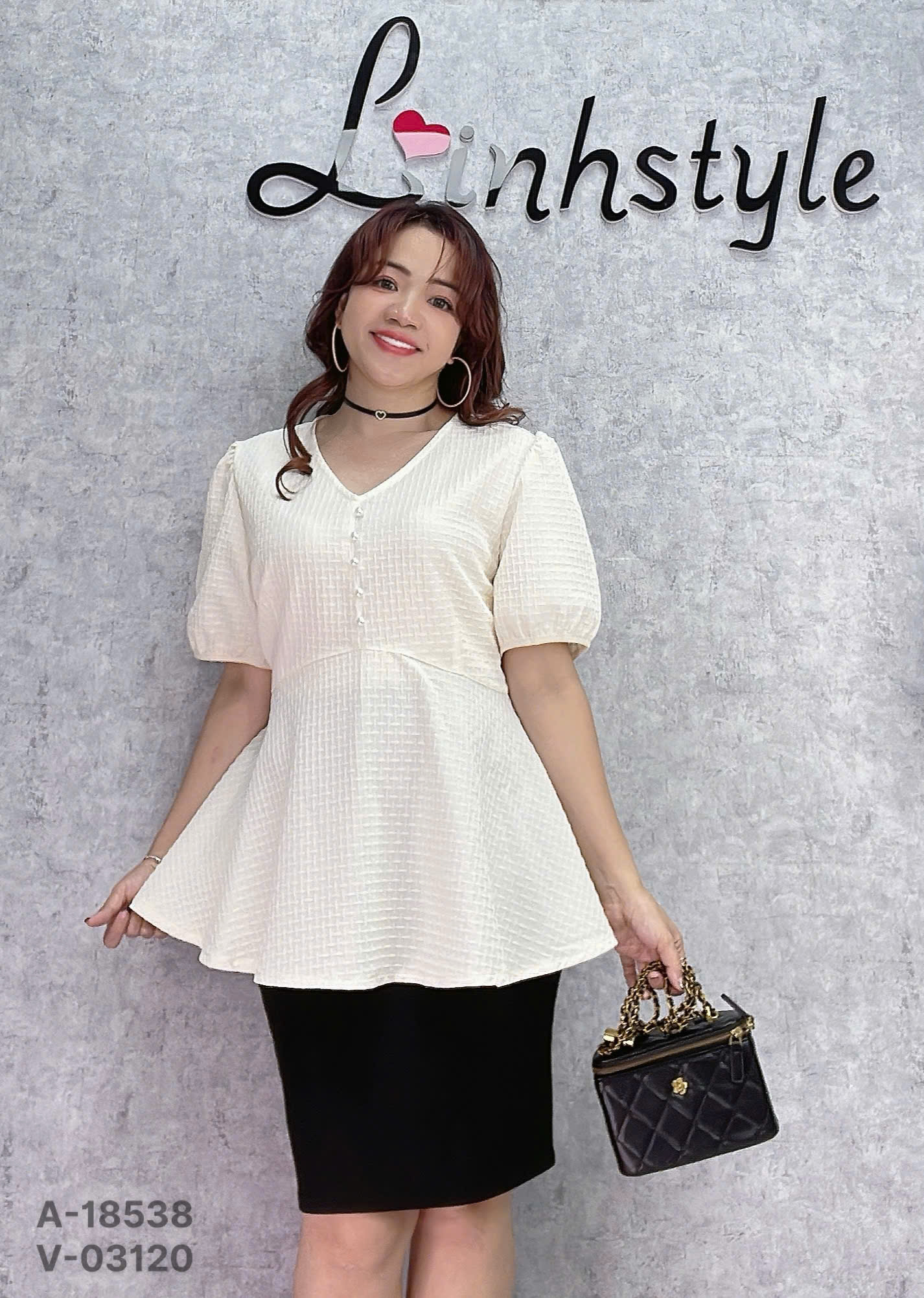 ✔ Áo kiểu PeplumBIGSIZE QCCC che bụng,sang trọn,nữ tính thanh lịch- 18538