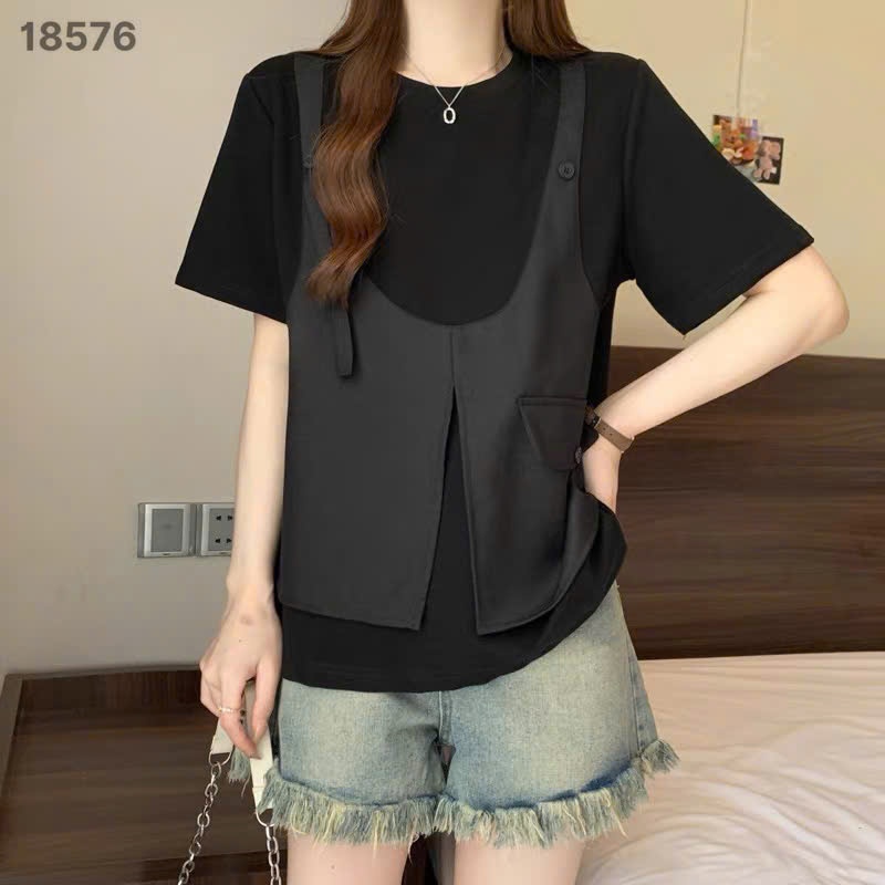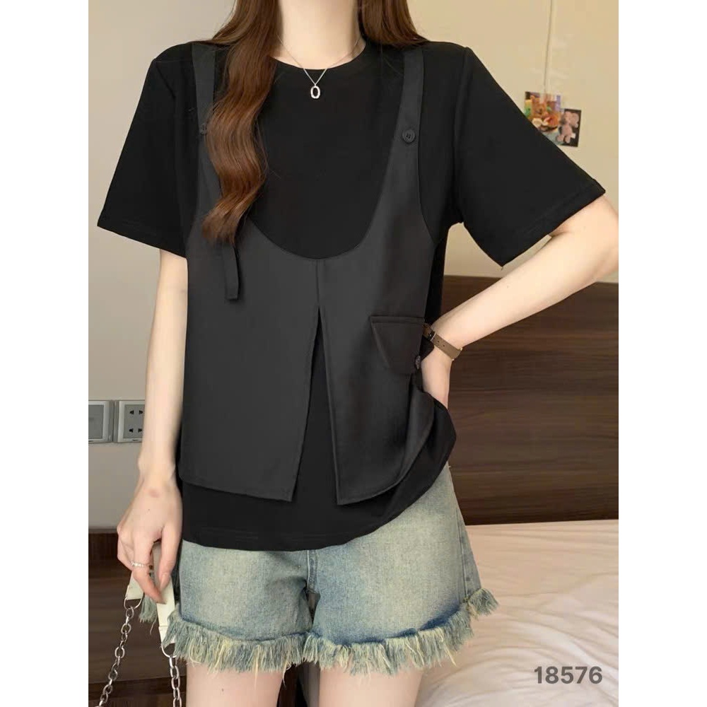 ✔ Áo thun BIGSIZE QCCC kiểu phối ghile thời trang sang trong thun co giãn -18576