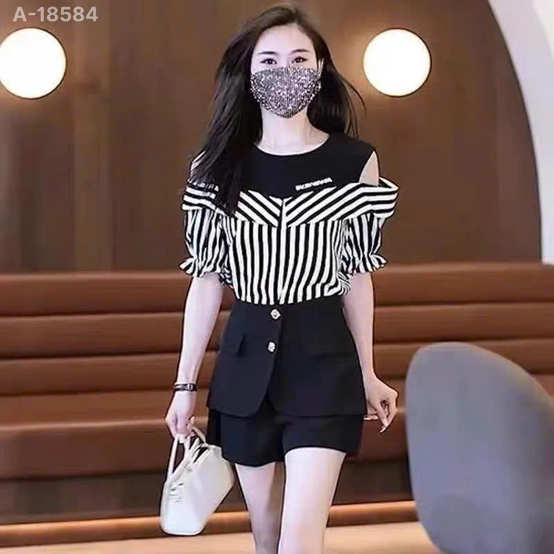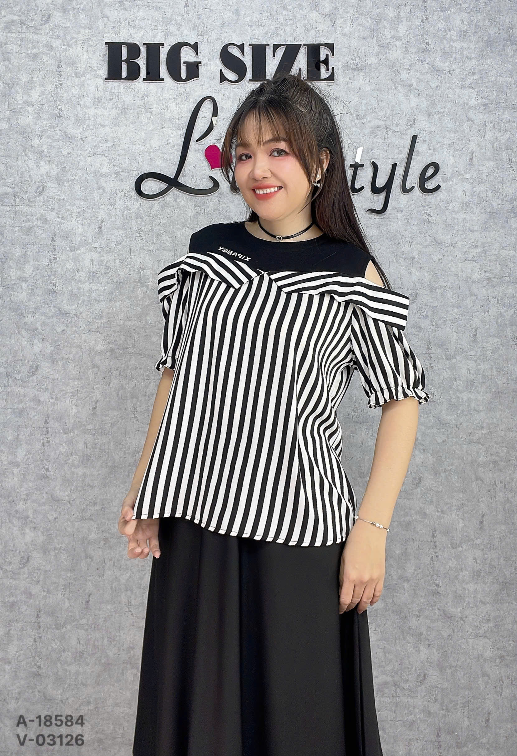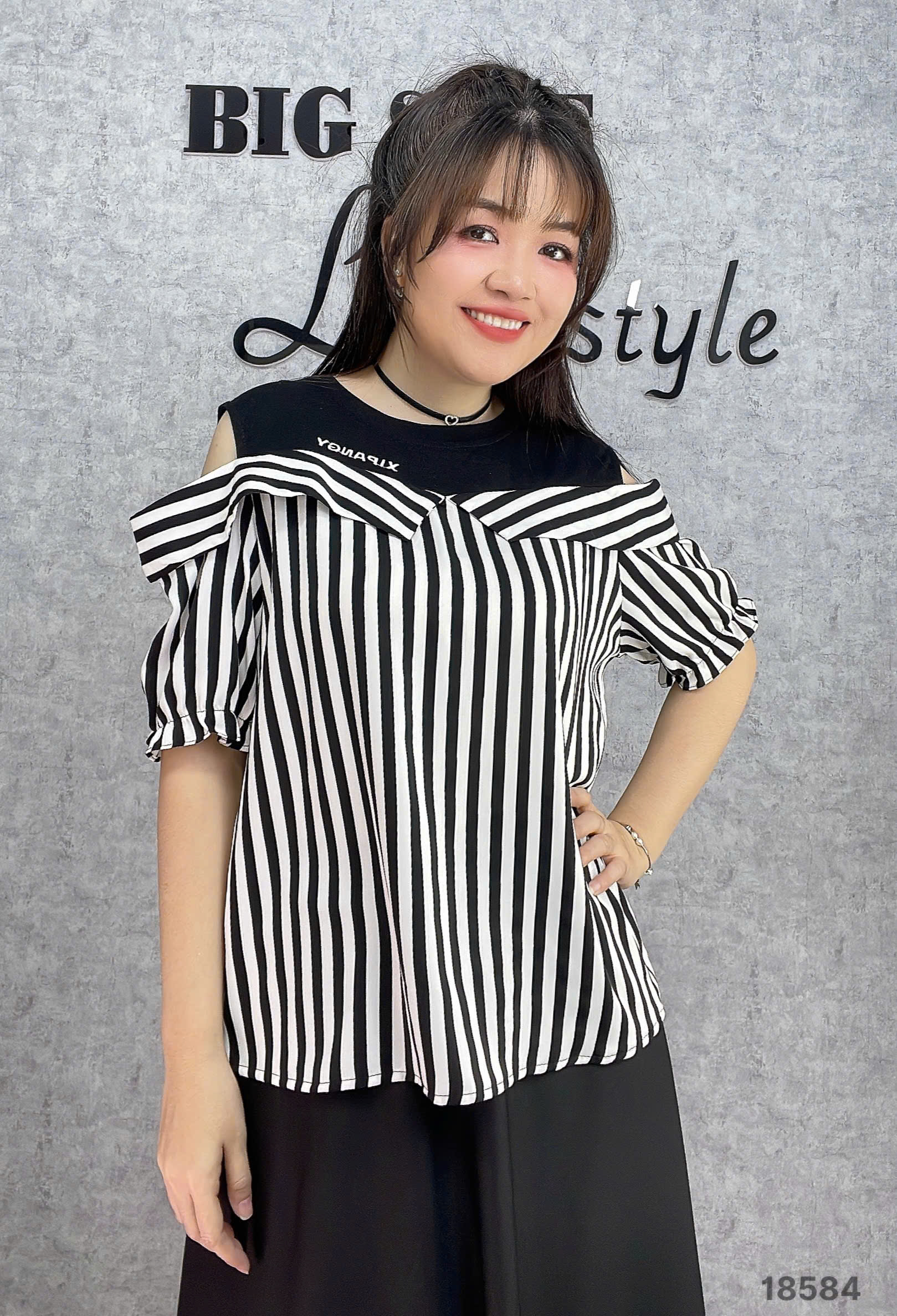 ✔ Áo kiểu rớt vai BIGSIZE QC chất lụa đẹp phối thun co giãn kẻ sọc mặc hack dáng -18584