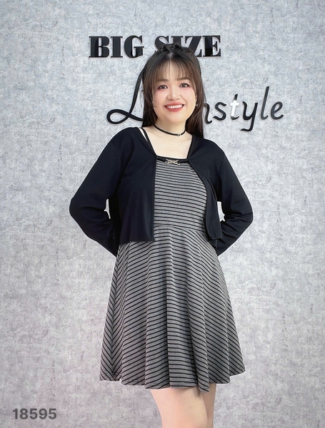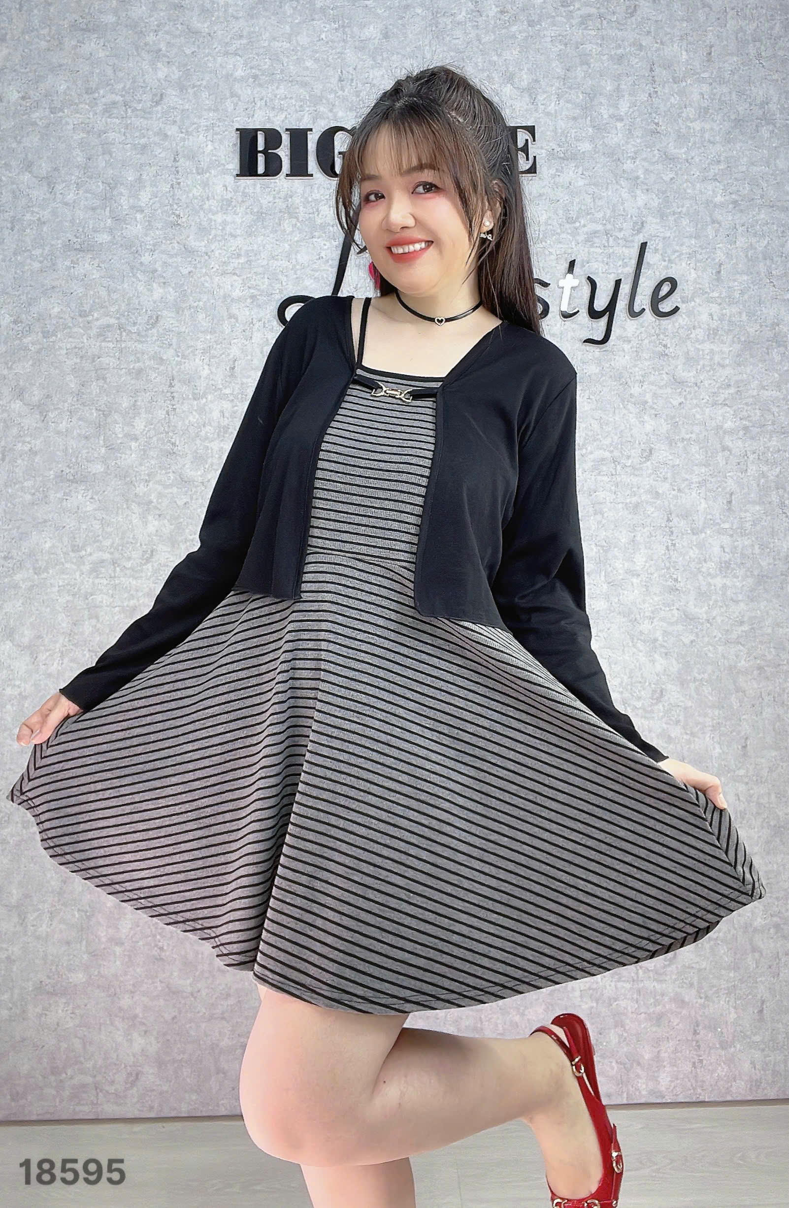 ✔ Set đầm đi tiệc BIGSIZE QCCC chất đẹp,mềm mịn Yếm phối Khoác-18595