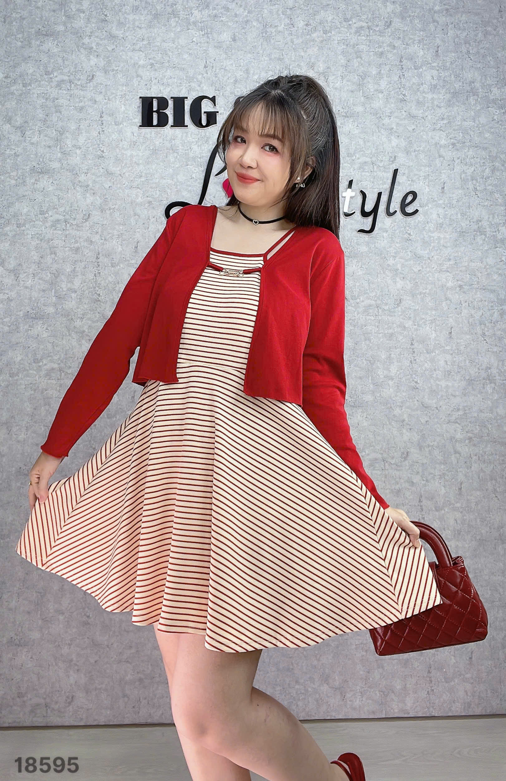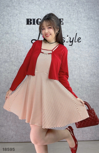 ✔ Set đầm đi tiệc BIGSIZE QCCC chất đẹp,mềm mịn Yếm phối Khoác-18595