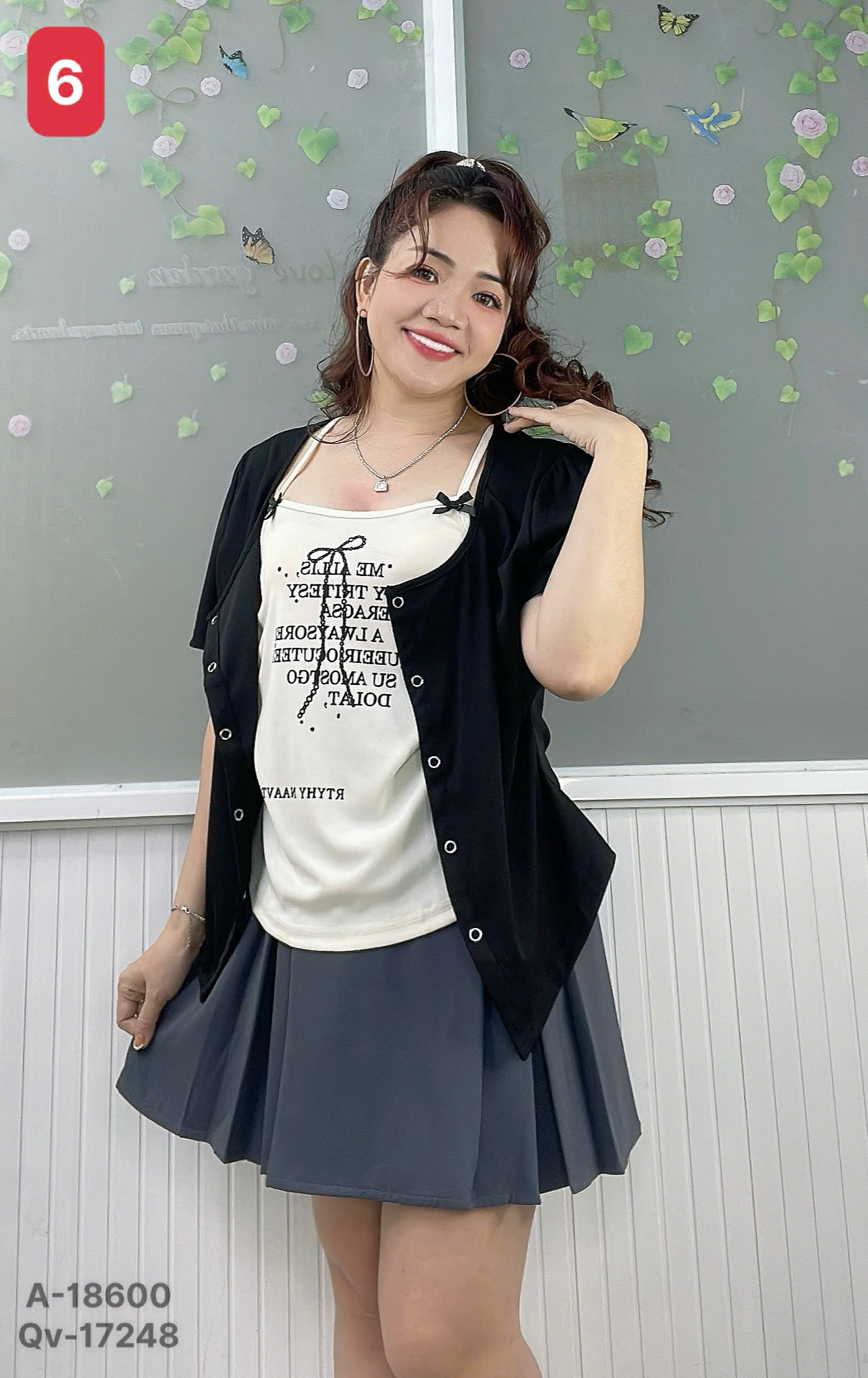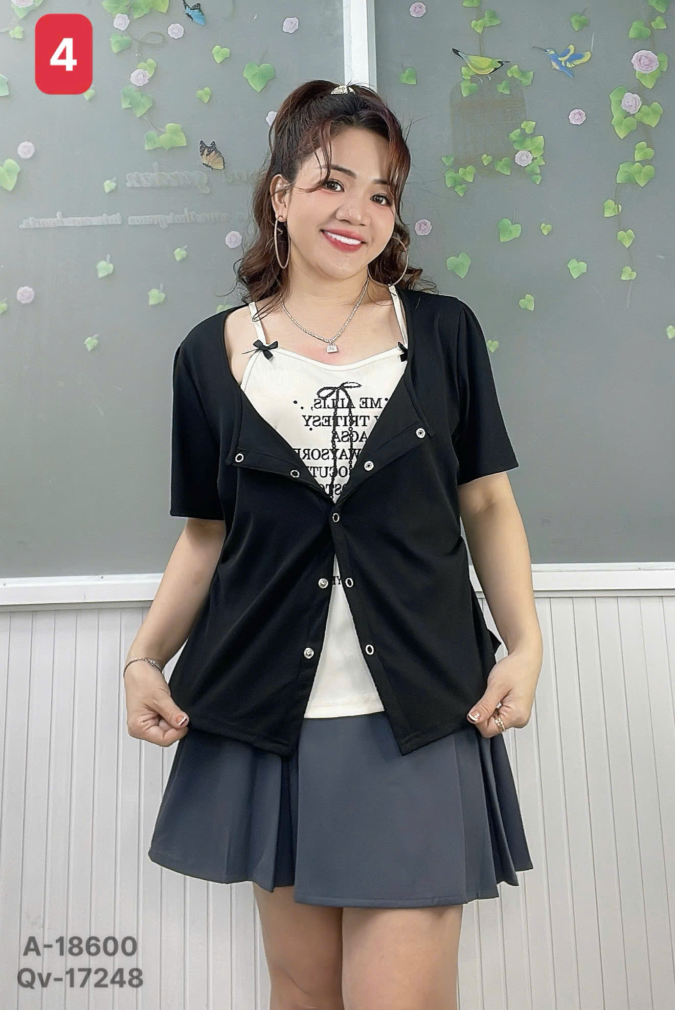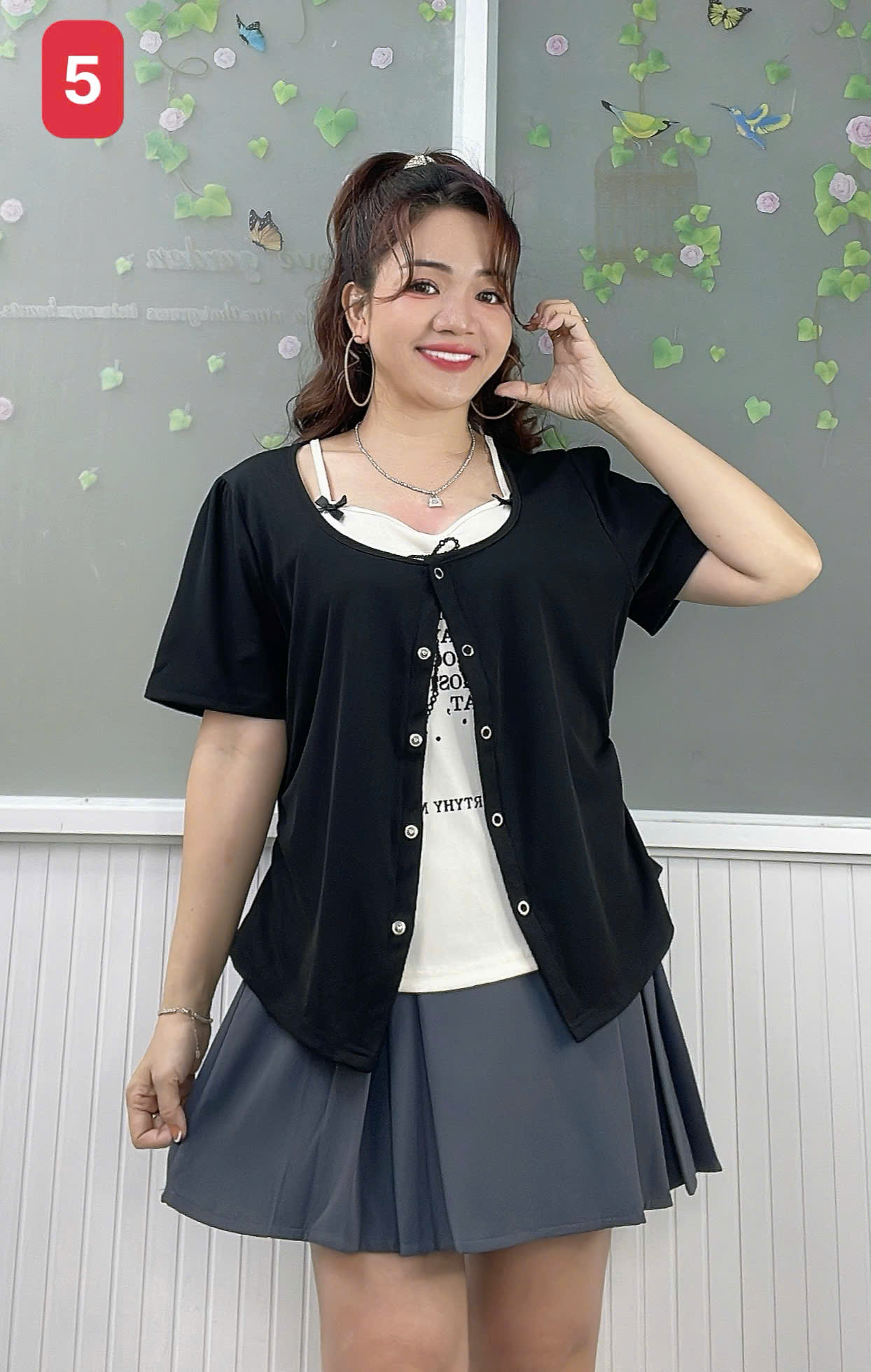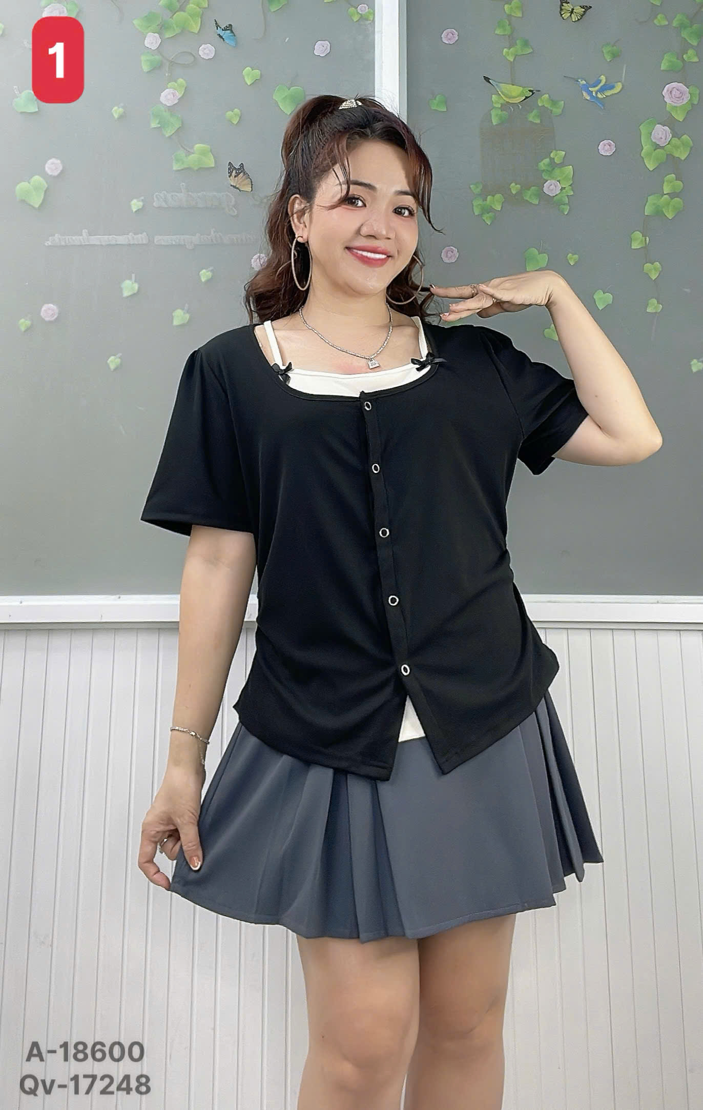 ✔ Áo kiểu BIGSIZE QCCC cổ yếm set giả 2 áo kiểu cài nút Nữ Tính nhấn eo hack dáng - 18600