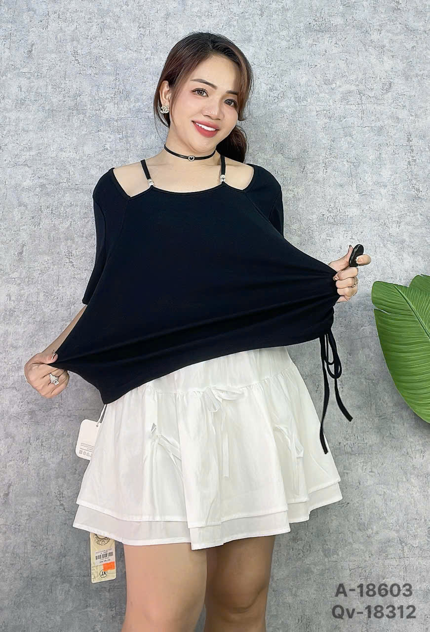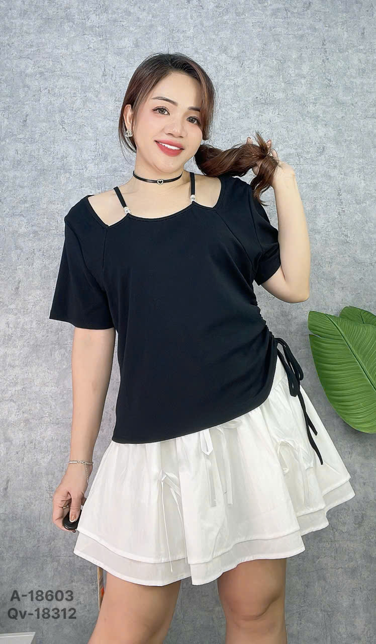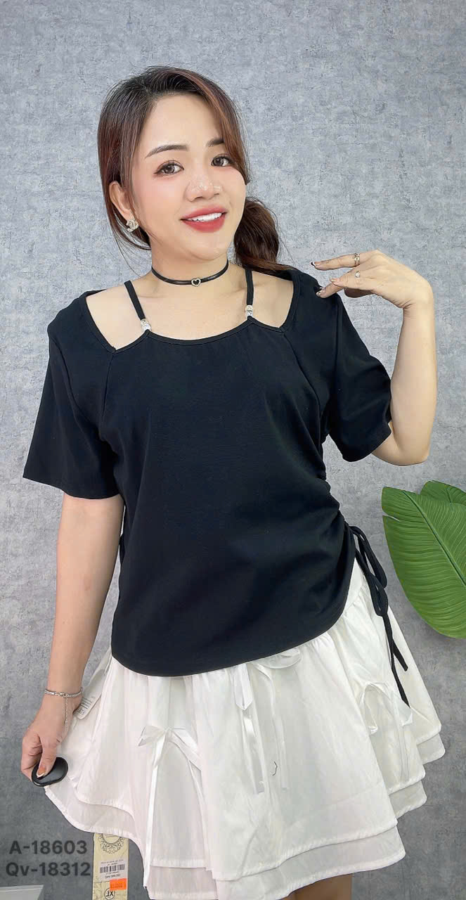 ✔ Áo Kiểu cổ Yếm BIGSIZE QC rút 1 bên nhấn eo hack dáng kiểu Nữ Tính -18603