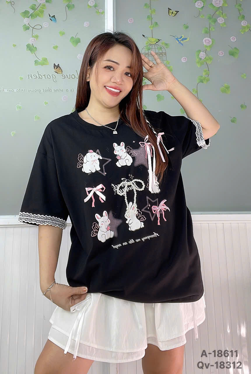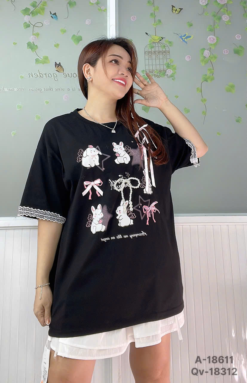 ✔ Áo thun BIGSIZE QCCC Nơ Tho- dễ thương tay phối Ren cotton co giãn chất đẹp -18611