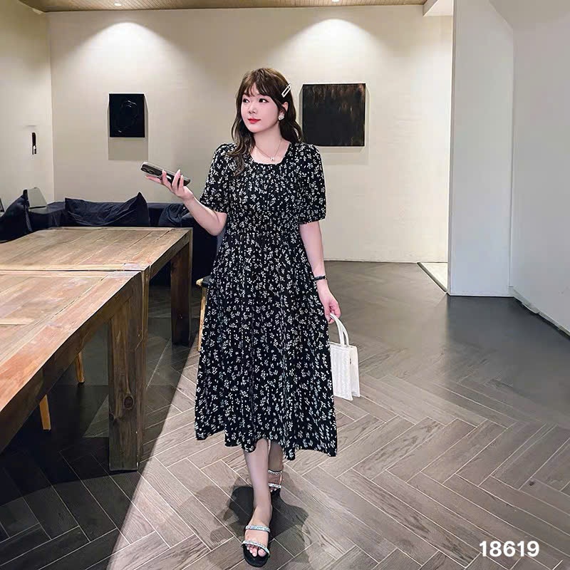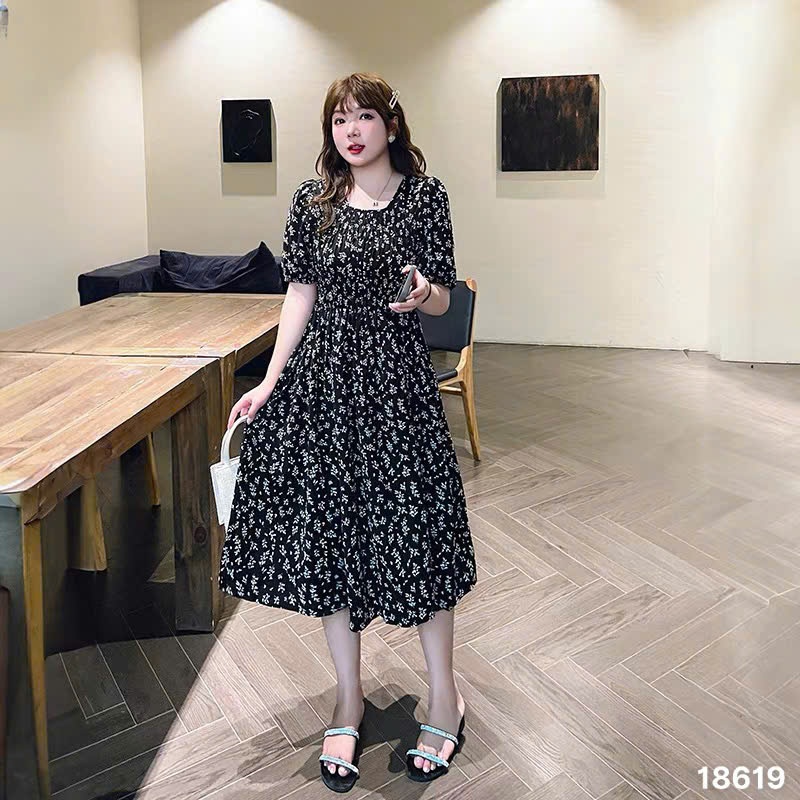 ✔ Đầm che bụng BIGSIZE QCCC nhúng dáng dài tôn dáng hack eo thon họa tiết Hoa nhí -18619