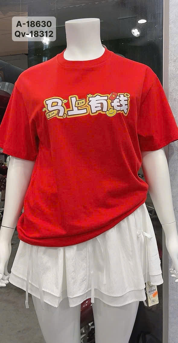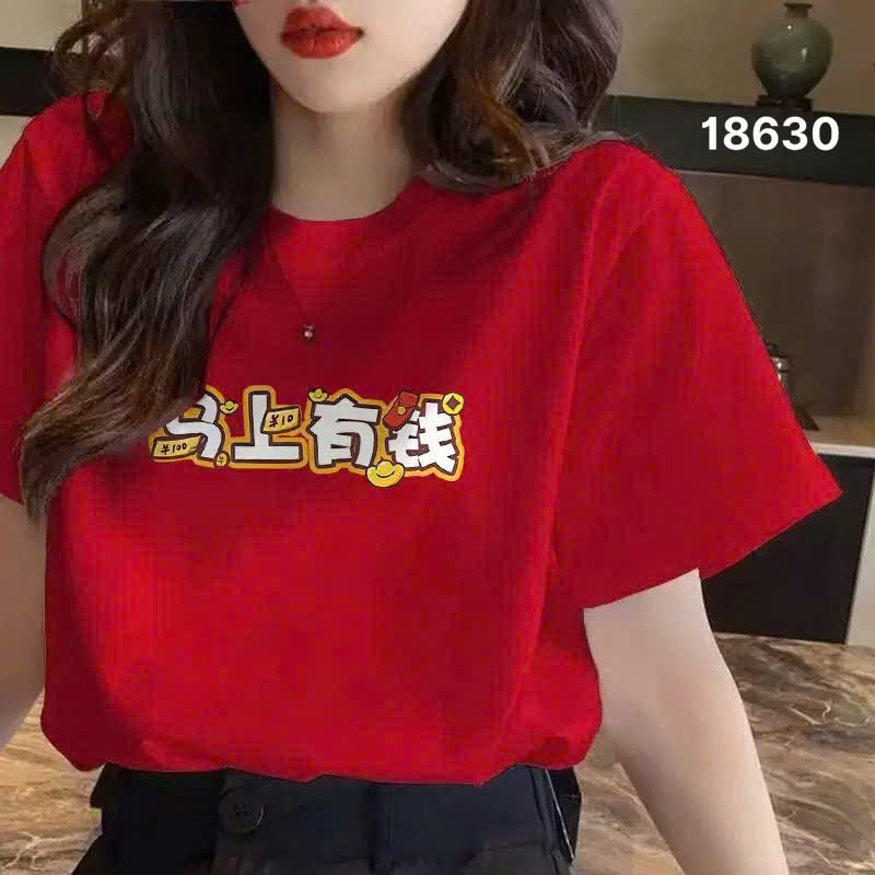 ✔ Áo phông OverSize BIGSIZE QCCC OVS chữ Tết may mắn màu Đỏ tươi cotton co giãn -18630