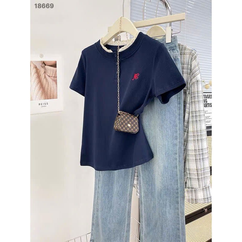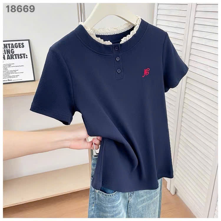 ✔ Áo thun BIGSIZE QCCC cổ tròn cài nút phối Ren thun tăm đẹp cotton siu co giãn chất đẹp - 18669