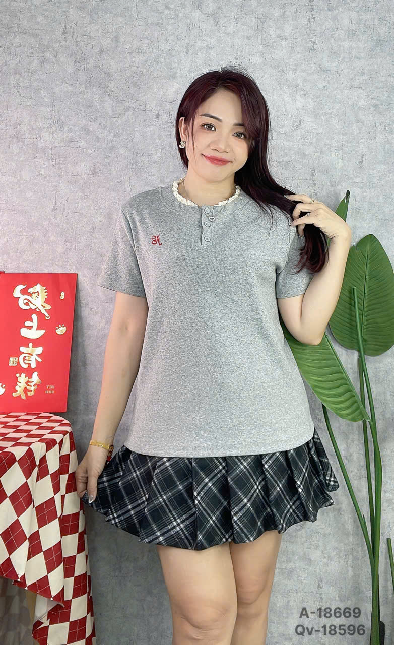 ✔ Áo thun BIGSIZE QCCC cổ tròn cài nút phối Ren thun tăm đẹp cotton siu co giãn chất đẹp - 18669