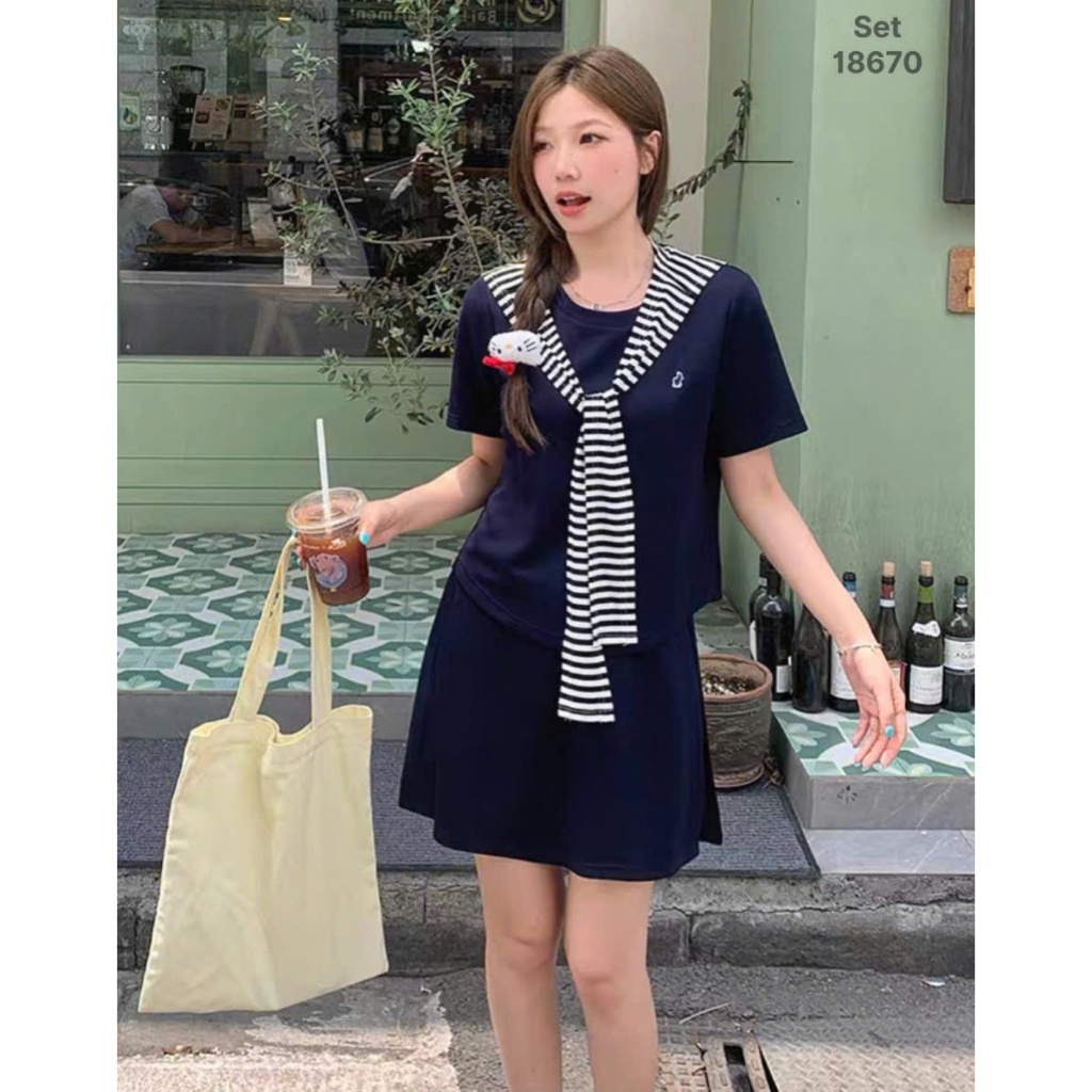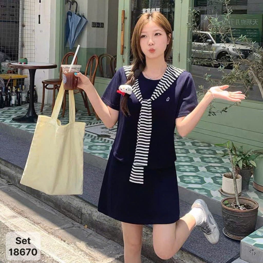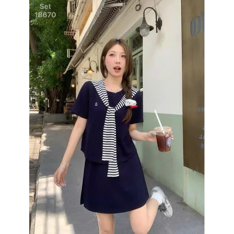 ✔ Set Váy 3 món che bụng BIGSIZE QCCC màu trơn thun mịn đẹp co giãn nhiều tặng kèm khăn sọc Thủy Thủ -18670
