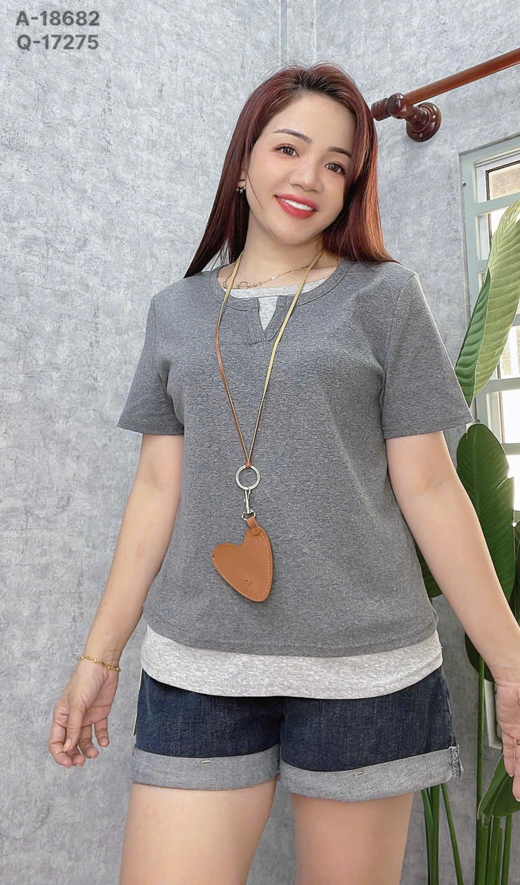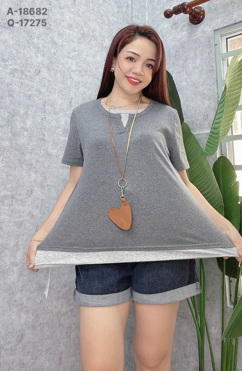 ✔ Áo thun BIGSIZE QCCC form mặc vừa người lai phối 2 màu trơn đơn giản - 18682