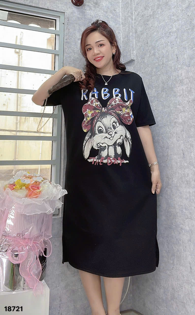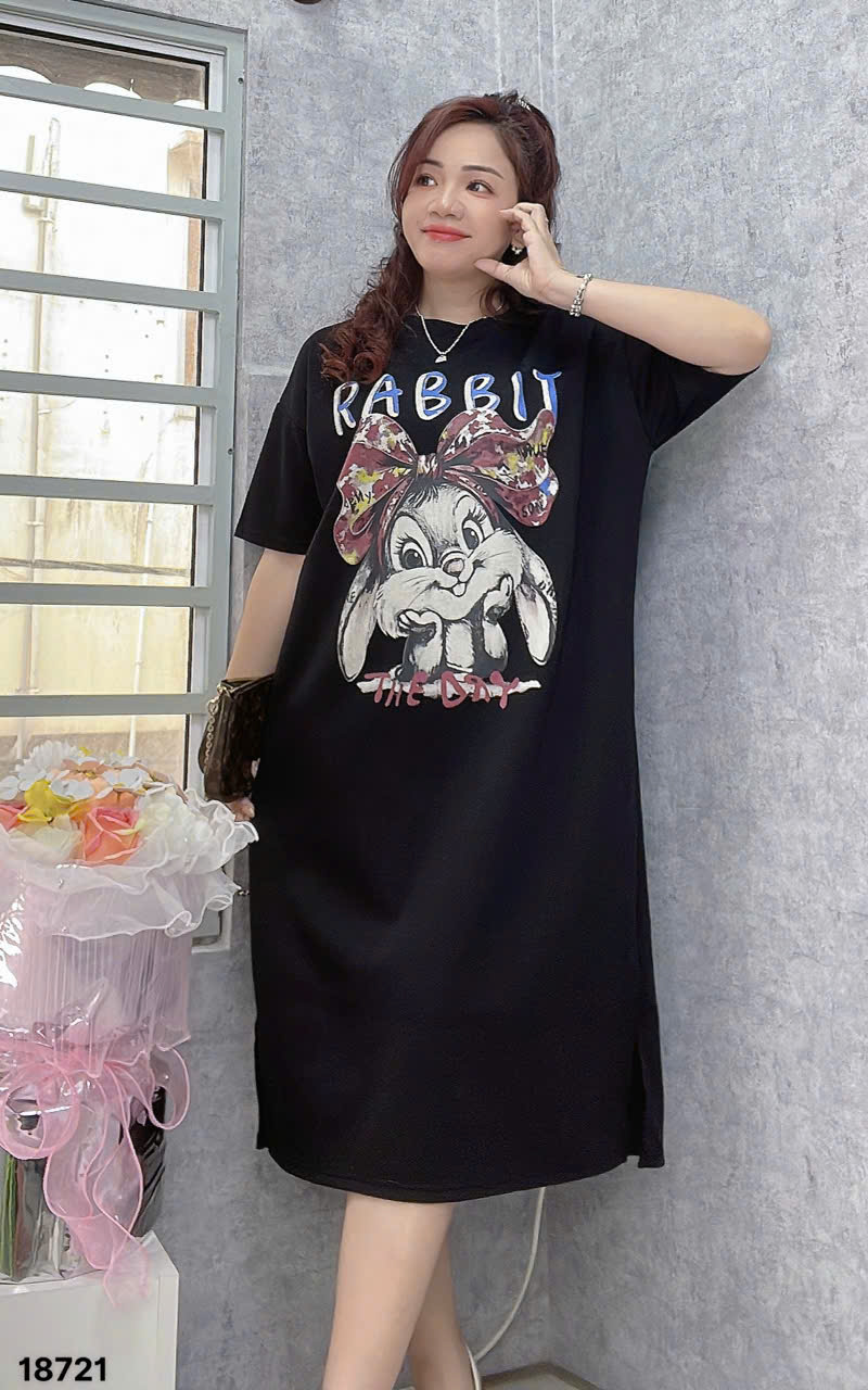 ✔️Đầm dáng Suông BIGSIZE QCCC che bụng trẻ trung thun co giãn mặc mát THO- 18721