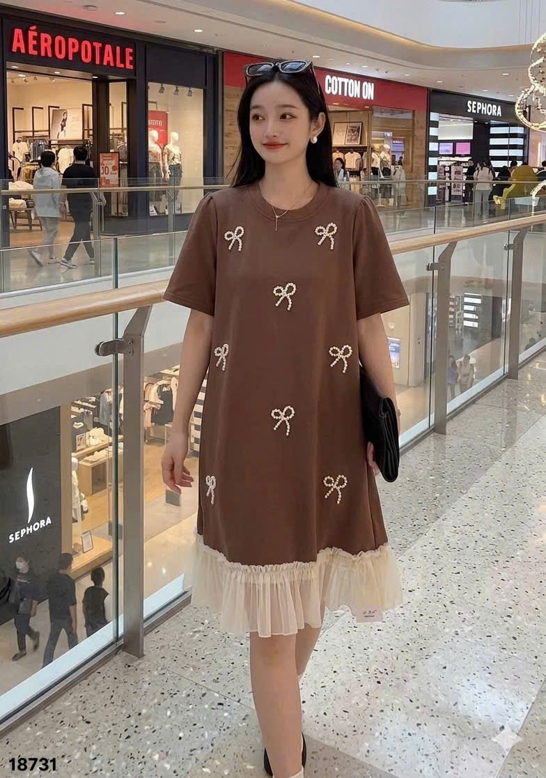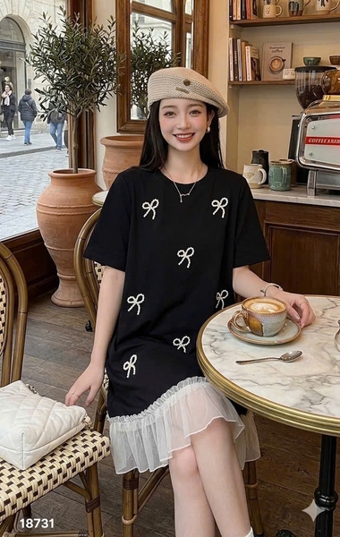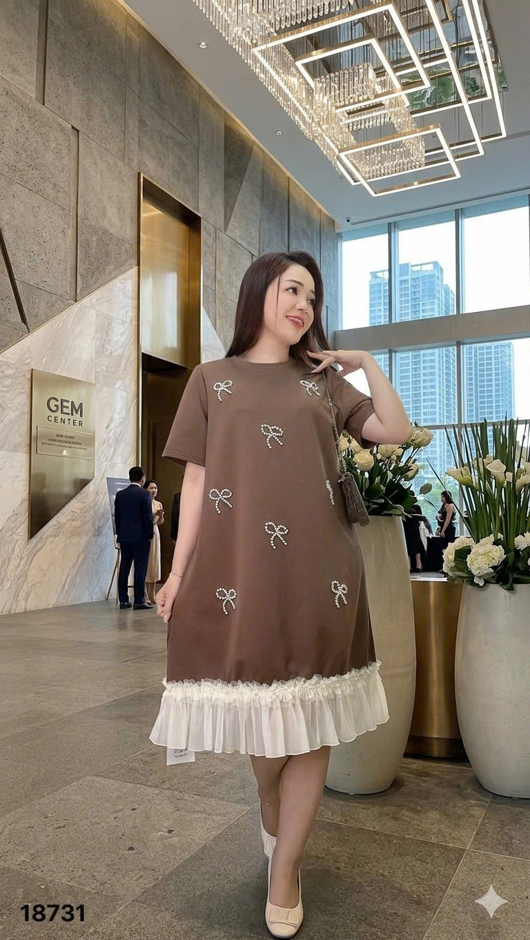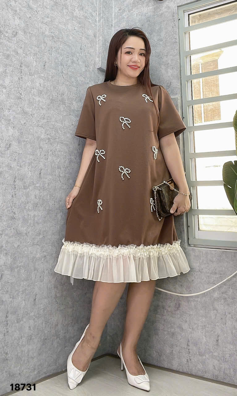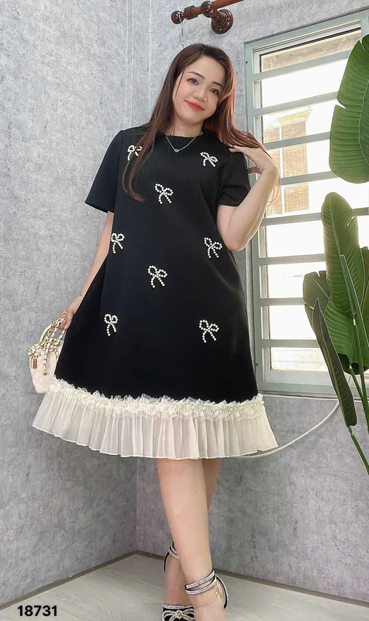 ✔️ Đầm đi tiệc che bụng BIGSIZE QCCC dáng A đính Nơ sang trọng lai phối trẻ trung thun đẹp co giãn - 18731