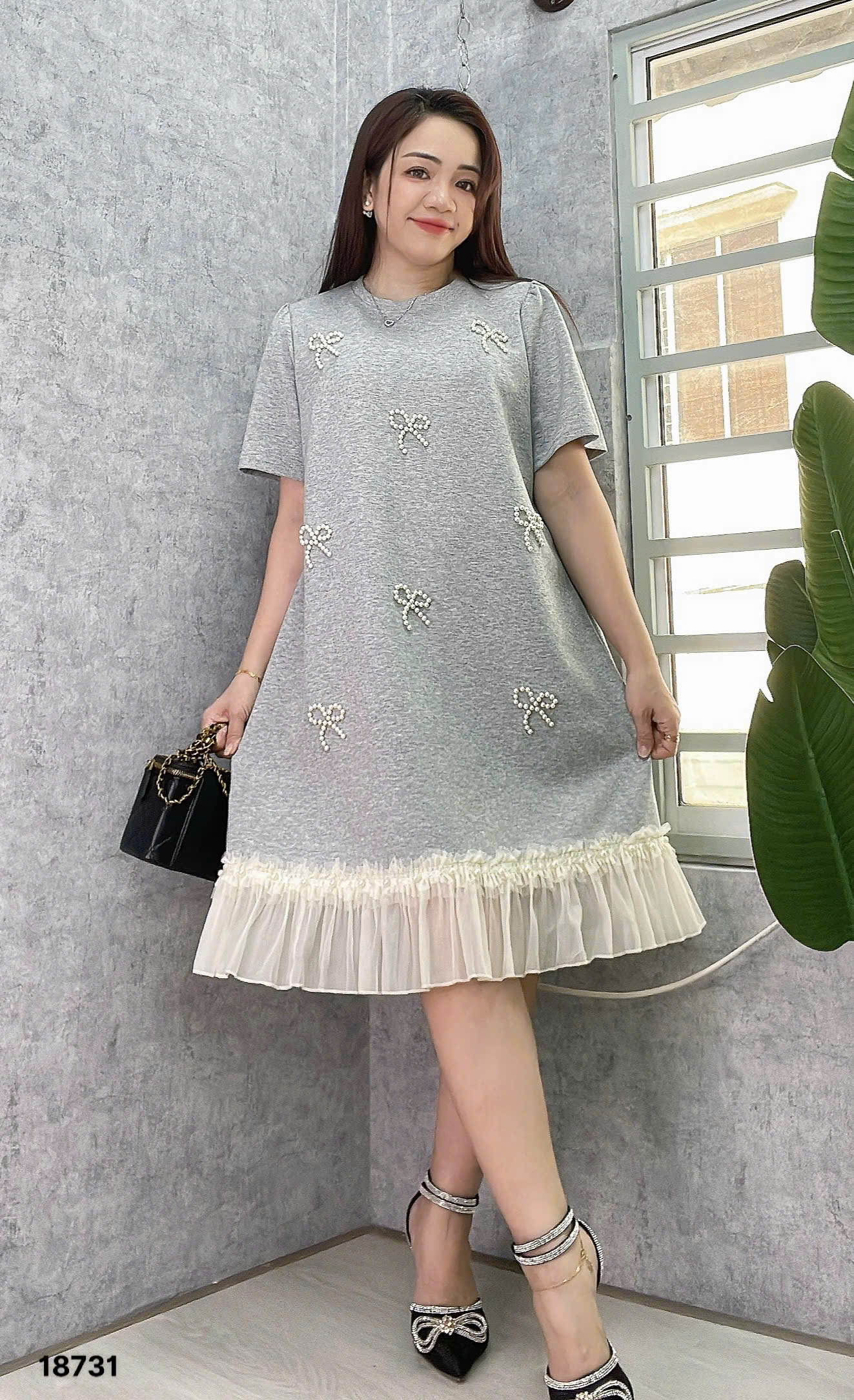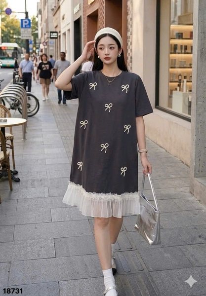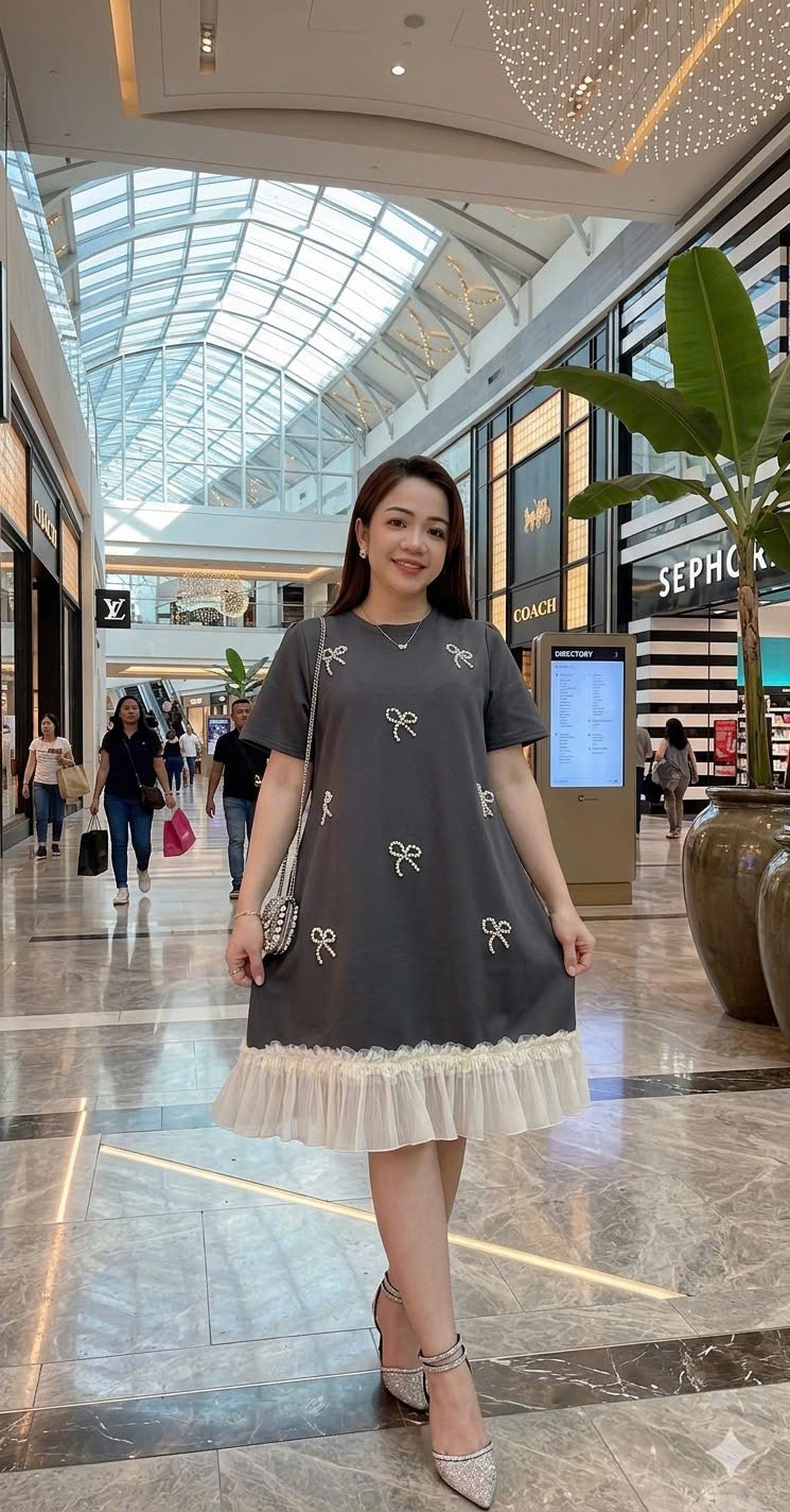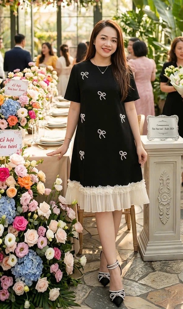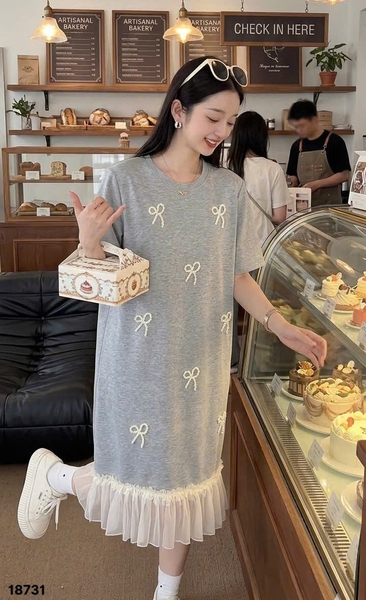 ✔️ Đầm đi tiệc che bụng BIGSIZE QCCC dáng A đính Nơ sang trọng lai phối trẻ trung thun đẹp co giãn - 18731