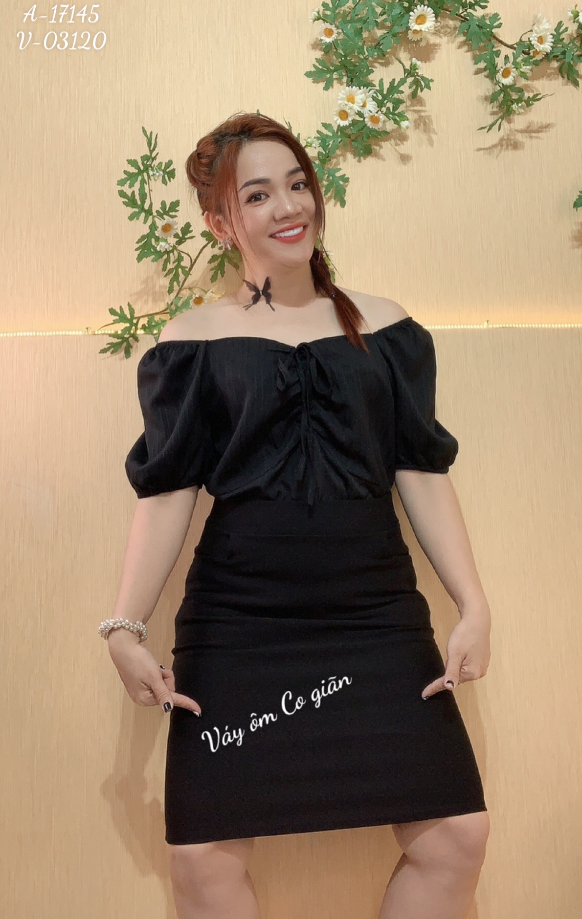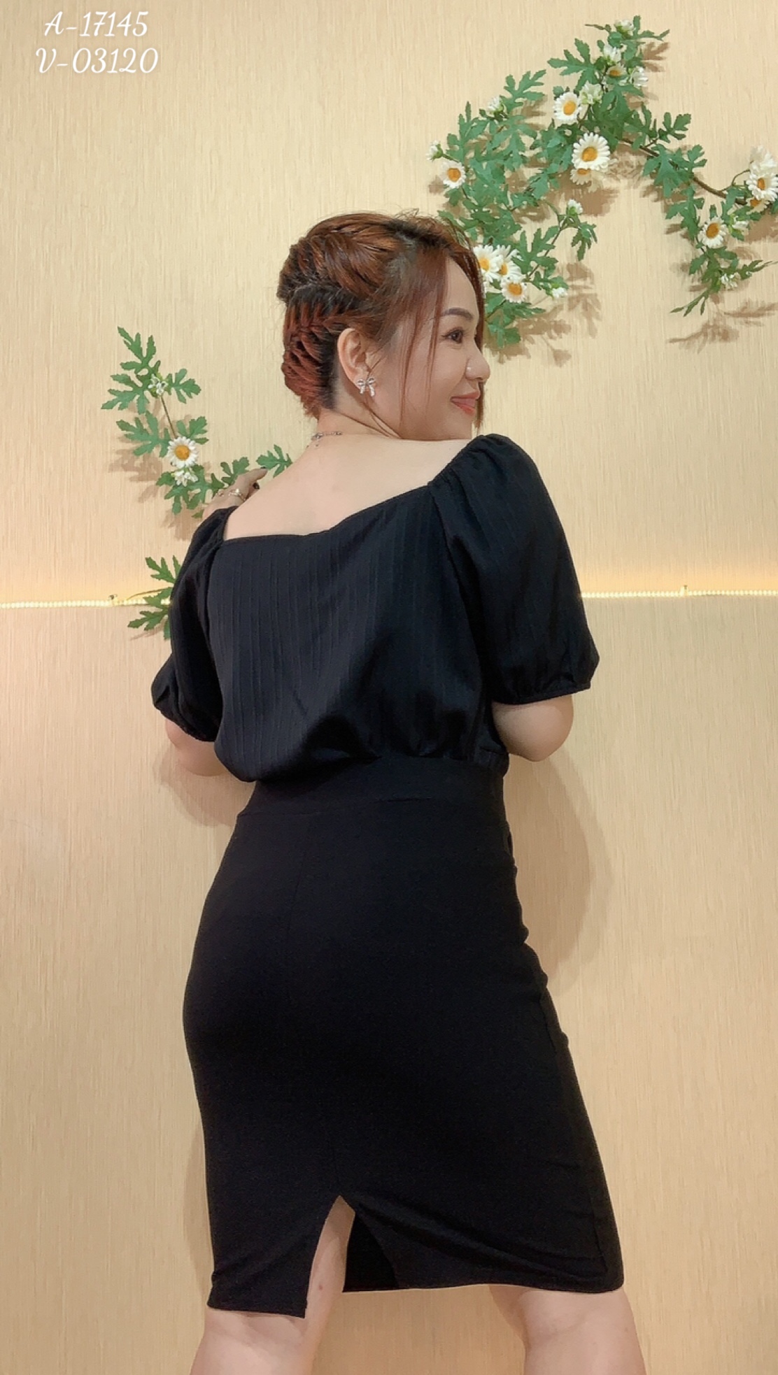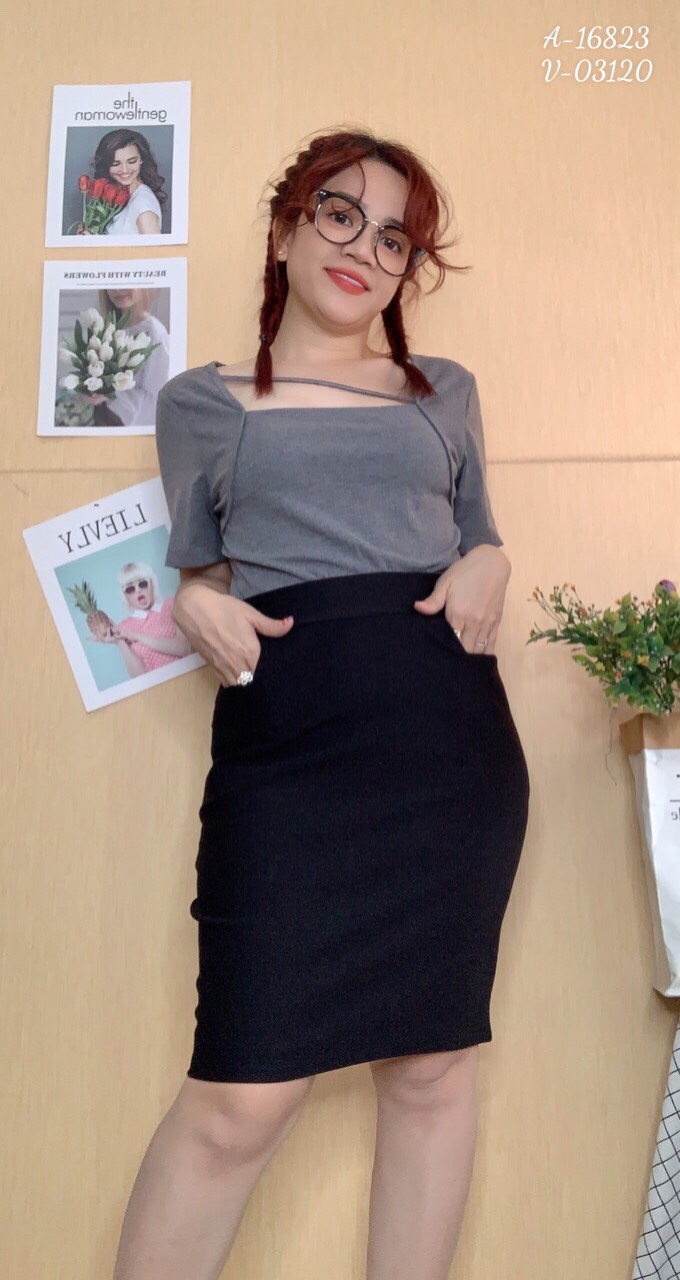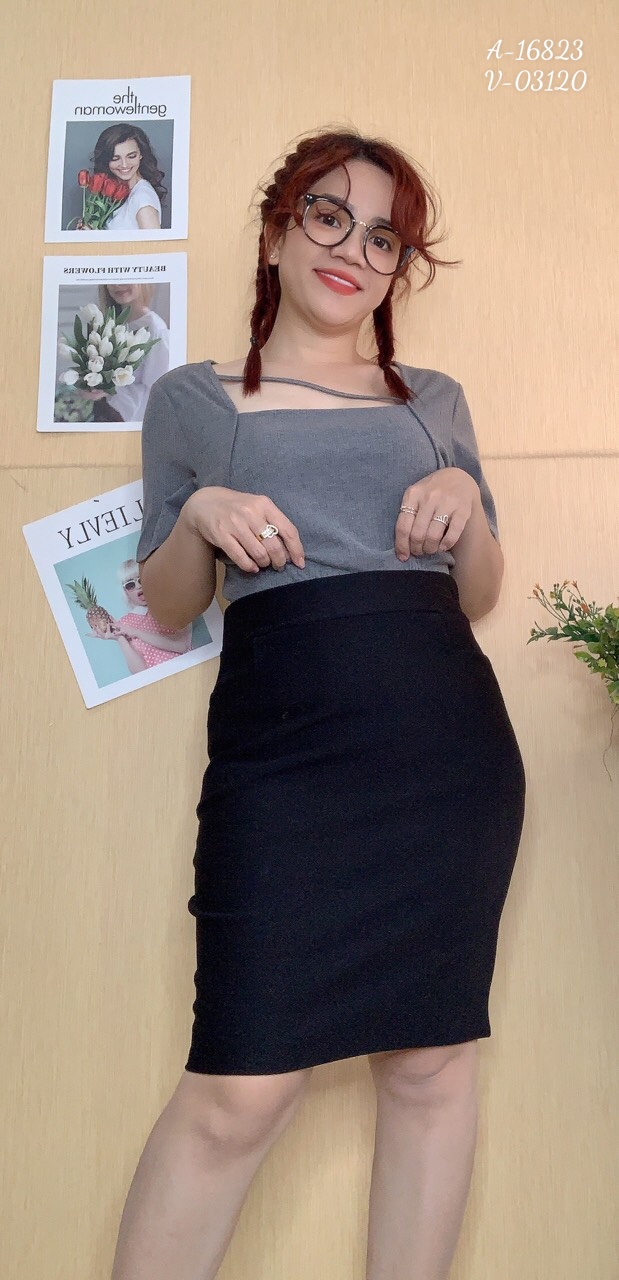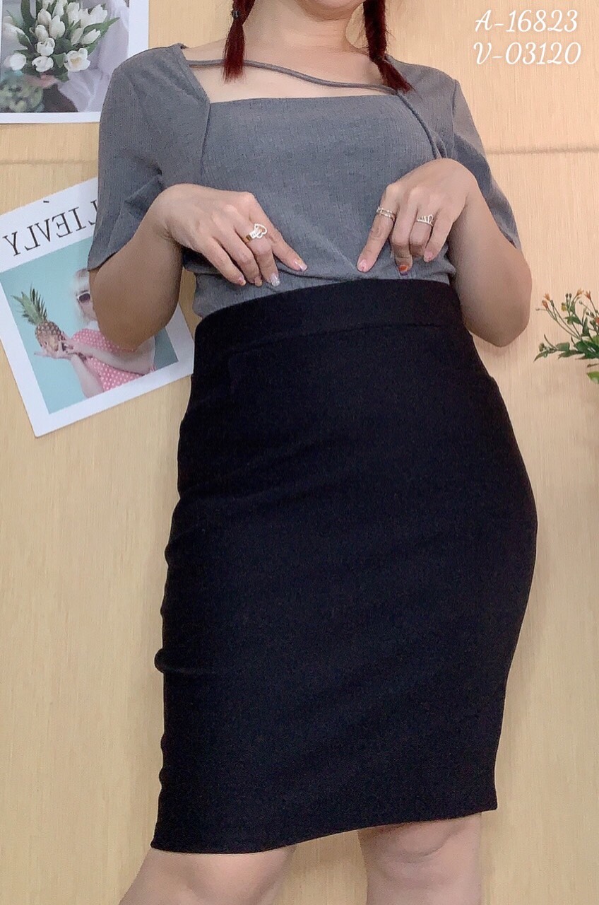 ★ Mẫu V-03120 thiết kế lưng thun, dáng Váy ôm, mặc trên gối.